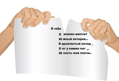 Но я отчетливо помнил, что там было написано какое-то стихотворение. Я посмотрел на кусок, который был у брата, там не было первых букв, но и сверху не было куска, видимо там была перфорация. Затем я посмотрел на свой кусок, там было написано: